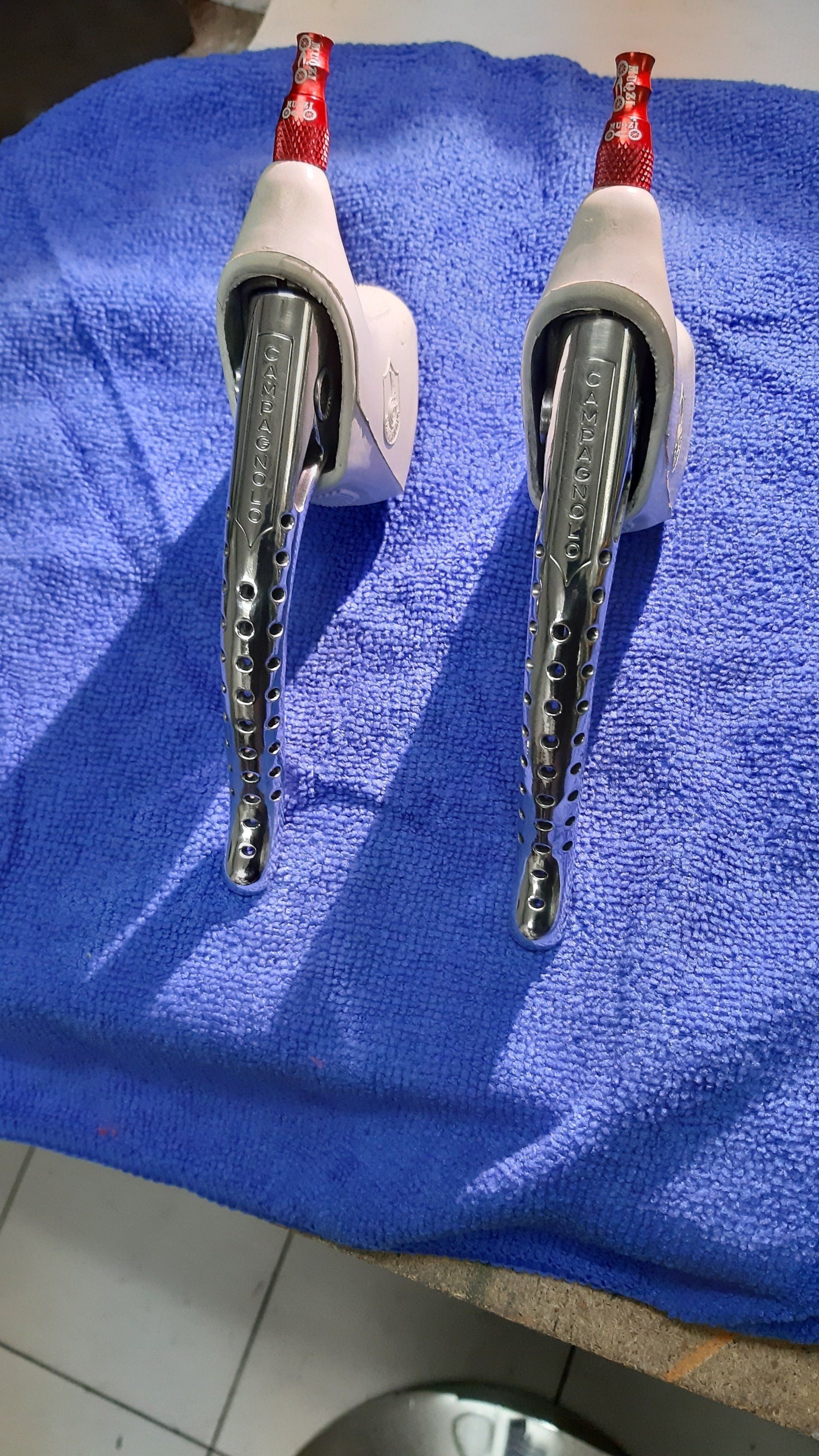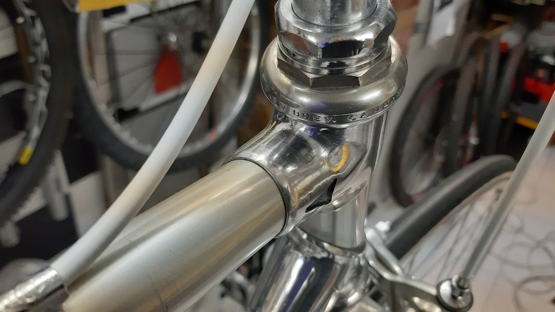 We can say that overall it was in good general condition, or as they say in the jargon, a good starting point. The frame, the joints and some components showed normal signs of aging, except for the brake levers (see photo) with evident smears (we will see the arrangement later) as always, complete disassembly of all components and we start the work.