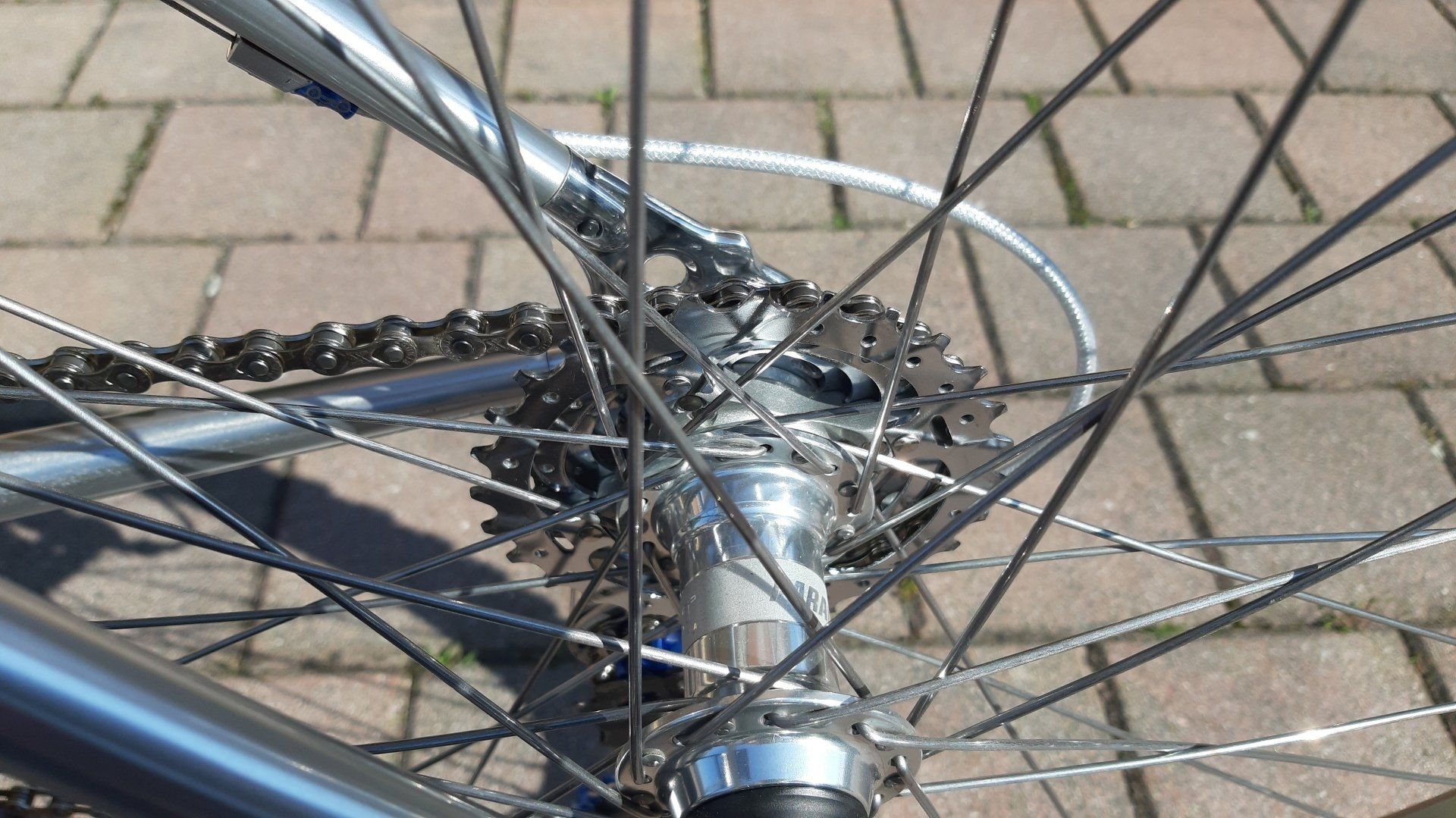 Quanto bella, quanto ormai rara, Mountain Bike della Alan. Per avere 28 anni si presenta in uno stato di conservazione eccezionale, e dal momento che è montata tutta Shimano XT ed intendo tutta con addirittura la serie di sterzo e i mozzi ruote, ne conferma la rarità. Chi la acquistò a suo tempo (in lire) sicuramente il prezzo si faceva sentire, oltretutto si completa l'allestimento con una forcella Marzocchi XC 600, con addirittura il suo kit completo di revisione forcella.