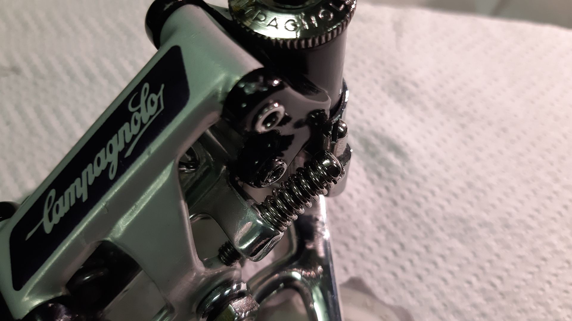 Note : Uno dei più prestigiosi gruppi dell'epoca che Campagnolo abbia prodotto, oltre ai materiali nobili usati (all'epoca) quale il Titanio, era robusto preciso ed affidabile.
