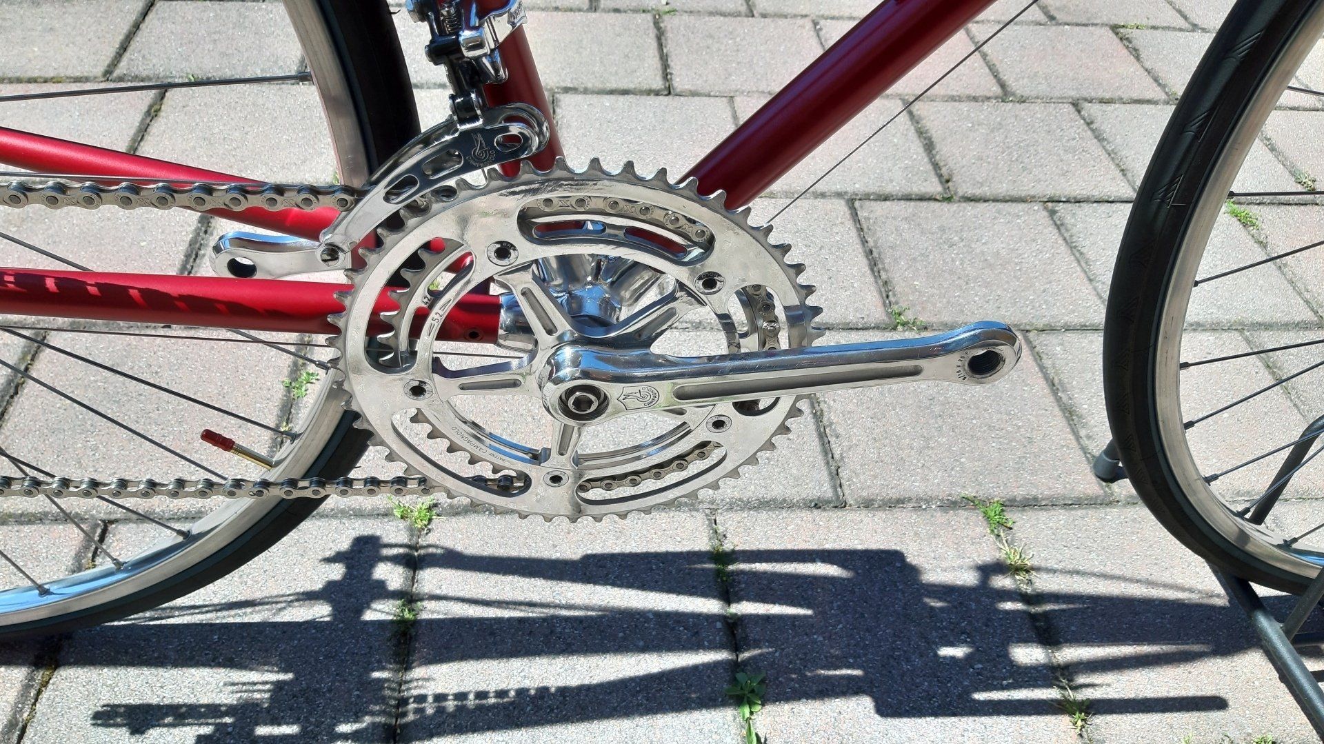 The Campagnolo Super Record group is always noteworthy, especially on an Alan frame full of charm, then everything is questionable and subjective. Its realization can have different purposes, a simple ride pedaling the emotions of the past, or even being able to participate in type events (Eroica, Dauntless, Dusty, etc.) but it would be a shame to ruin it, perhaps it could even set up the window of a shop !