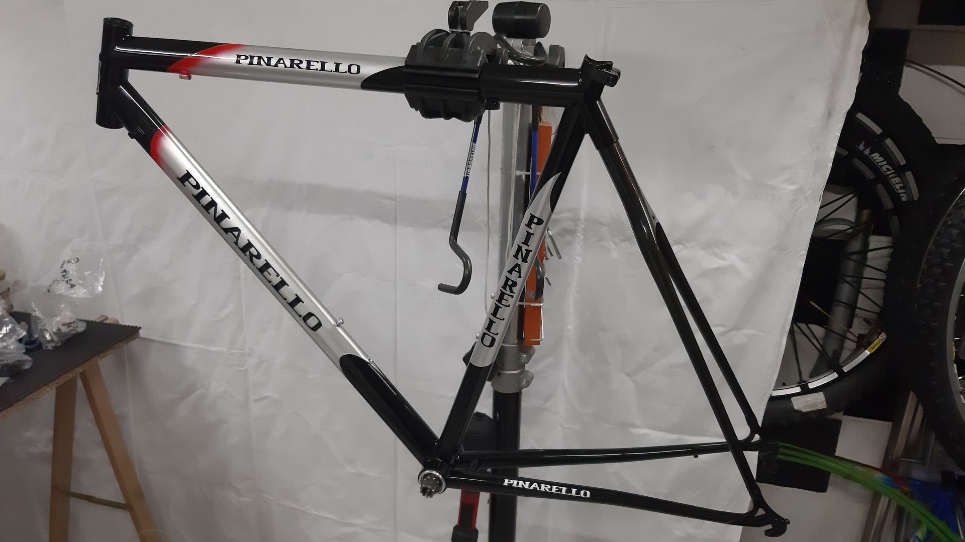 Considerazione : Uno degli ultimi (più belli) telai in acciaio prodotto da Pinarello, ultraleggero essendo equipaggiato con carro e forcella in carbonio. Di seguito vedremo una trasformazione per quanto riguarda l'impostazione di guida, diciamo che permette a chi ha ancora lo spirito corsaiolo di avere una postura meno impegnativa, fermo restando che la trasformazione potrà tornare alle sue origini.